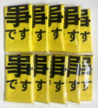 黄色いタオルにもっともよく目立つ黒色で「無事です」の印刷があるタオルです。